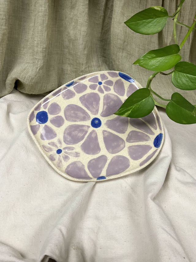 Assiette en grès fabriquée à la main. Dégustez vos aliments préférés dans cette jolie assiette fleurie.